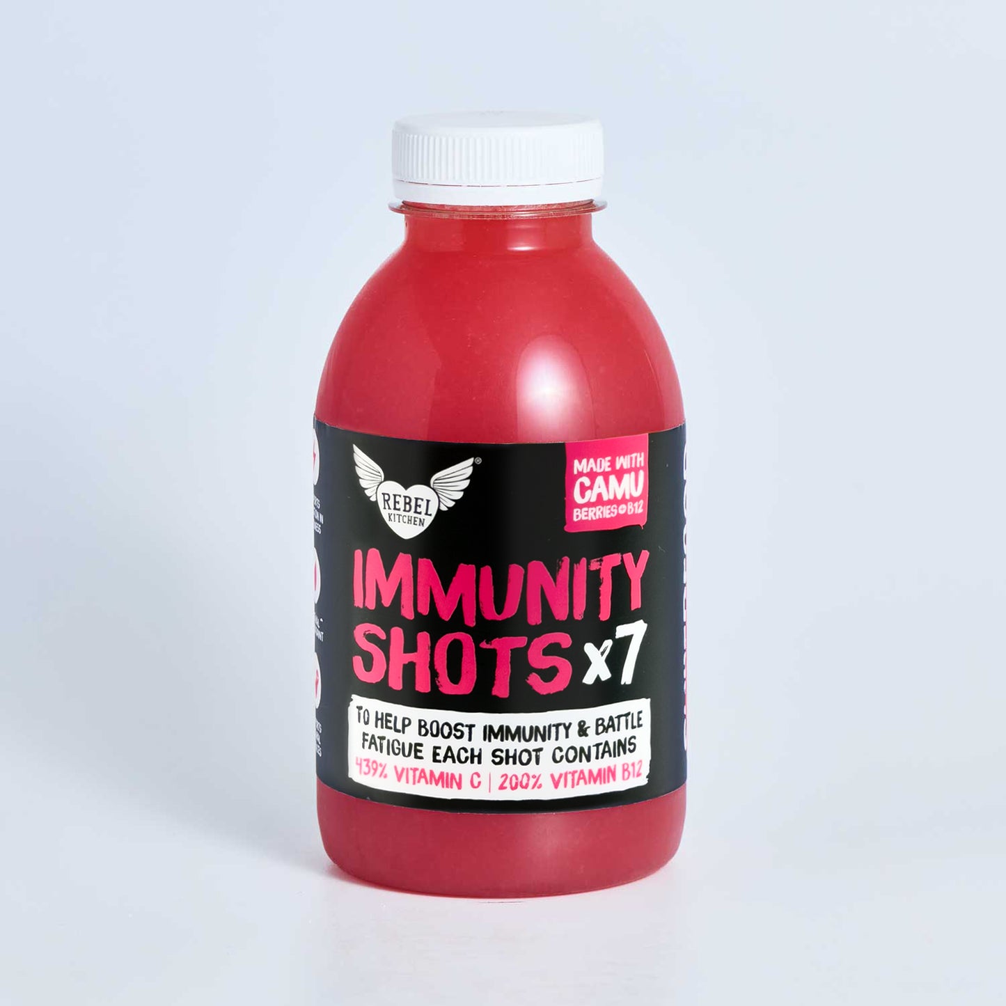 By making camu camu berry pulp the star of the show, each 60ml dose contains >350mg of natural vitamin C (that’s 430% of our recommended daily amount!).